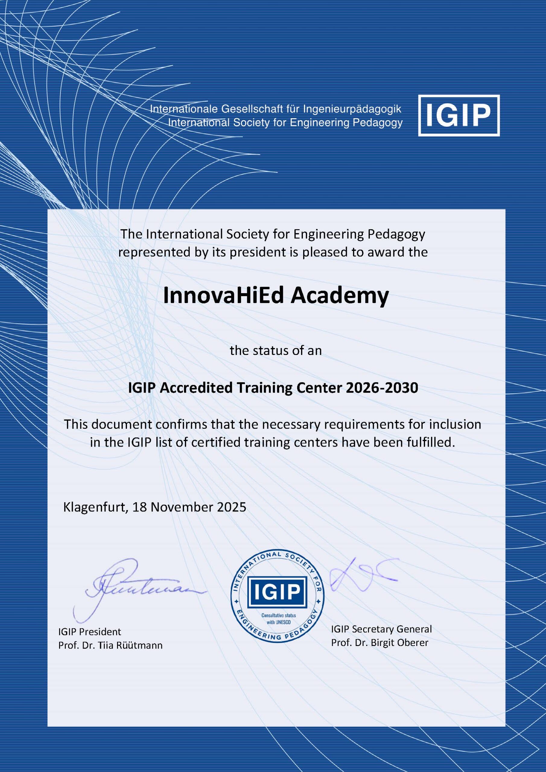 En esta nueva etapa, innovaHiEd Academy realiza sus actividades en afiliación y colaboración con la Federación Internacional de Sociedades de Educación en Ingeniería (IFEES), con el objeto de potenciar los servicios de asistencia para con sus miembros.