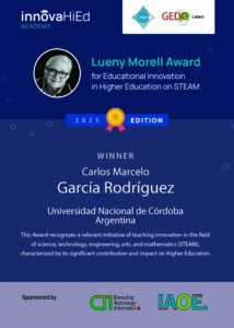 Este premio reconoce una iniciativa relevante de innovación docente en el ámbito de las ciencias, la tecnología, la ingeniería, las artes y las matemáticas (STEAM), que se caracterice por su significativa contribución e impacto en la ES.